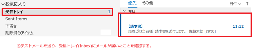 ※Outlookのメールボックスのどこに入ったら、Excel台帳に記載するか設定するためのものです。Inboxは受信トレイです。もし、違うフォルダに入ったものを引き出したい場合は、そのフォルダ名に変更してください。