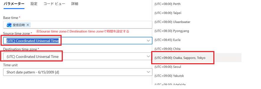 ④Source time zoneとDestination time zoneを日本時間に設定する。