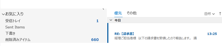 Outlookでメール(件名が「請求書」と記載されているもの)を受信したら、SharePoint上にあるExcelファイルの各項目を入力する作業を自動化することとします。