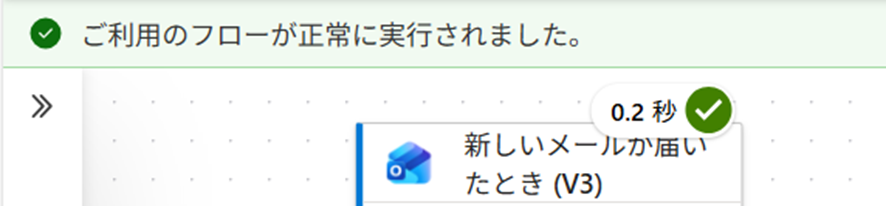 すると、表に追加されませんが、フローでは「ご利用のフローが正常に実行されました。」と表示されます。